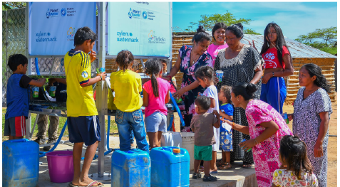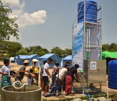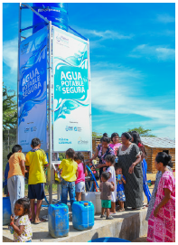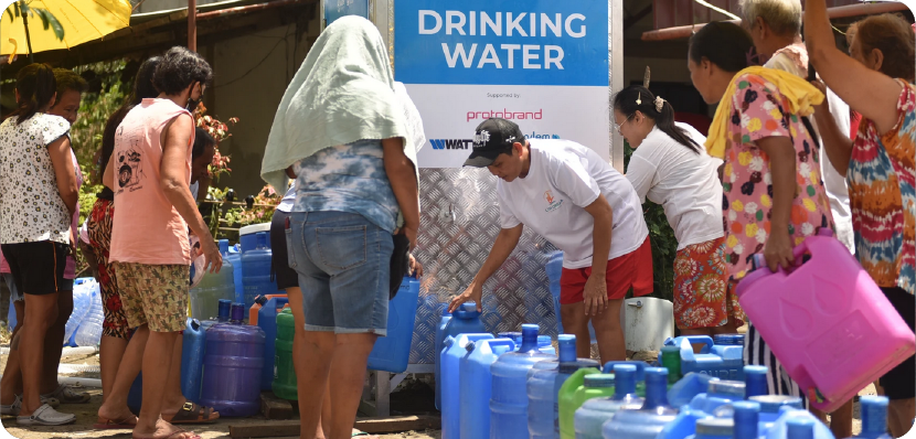 Deployment of an AquaBlock system at the Barangay Poro, Philippines evacuation center. This facility serves four communities with 1,181 families that have access to safe water.